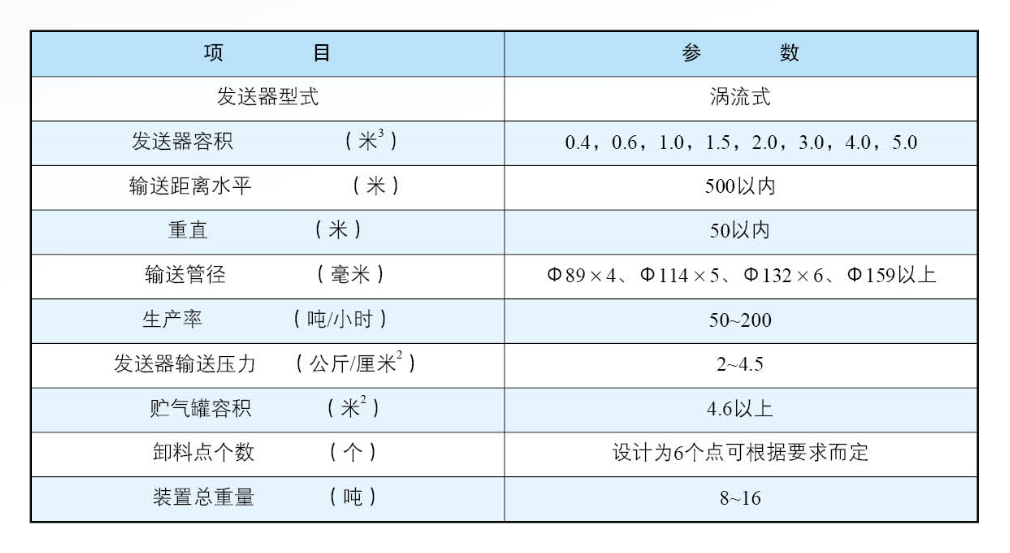 ZY91系列渦流式氣力輸送系統(tǒng)主要技術(shù)參數(shù)